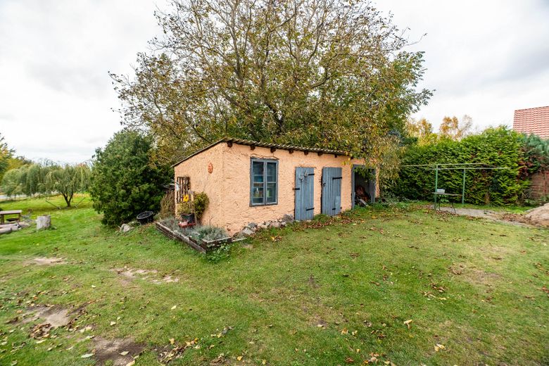 Für Praktische Nutzungszwecke stehen ein Holzlager sowie ein separater Schuppen zur Verfügung. Ein Räucherofen erweitert die Möglichkeiten für Hobby und Genuss.