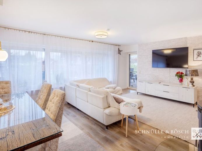 Herzlich Willkommen! Durch die weiße Hauseingangstür gelangen Sie in den Eingangsbereich dieses schönen Hauses. Von hier aus geht es direkt in den offenen Wohn- und Essbereich, der das Herzstück des Hauses bildet. Die offene Küche, die 2024 erneuert wurde, ist an den Essbereich angeschlossen und verbindet damit die drei Bereich optimal miteinander. Der im Wohnzimmer verbaute Kamin schafft auch in der kalten Jahreszeit eine angenehme Wärme, die das gesamte Haus durchströmt. Die Terrasse ist vom Wohnzimmer aus zugänglich und vollständig überdacht, so dass die Gartenparty auch bei schlechtem Wetter nicht ins Wasser fällt. Weiter finden Sie im Erdgeschoss ein großes Schlafzimmer sowie ein Ankleide- oder Kinderzimmer und das renovierte Bad mit ebenerdiger Dusche. Vom Flur aus geht es ins Dachgeschoss, welches aktuell das Reich der Kinder und deren Gäste darstellt.