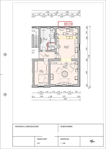 Das Herrenhaus umfasst fünf vermietete Wohneinheiten mit Wohnungsgrößen zwischen ca. 75 m² und ca. 112 m². Die Wohnungen verteilen sich auf Erd-, Ober- und Dachgeschoss und verfügen über klare Grundrisse sowie teilweise über Balkon-, Terrassen- oder Dachterrassenflächen. Ein voll ausgebautes Kellergeschoss mit Mieterkellern, Technik- und Gemeinschaftsflächen ergänzt das Gebäude funktional.