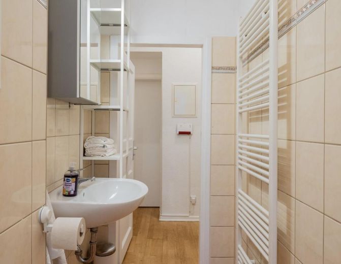 Die Wohnung befindet sich im Erdgeschoss, liegt jedoch im Hinterhaus und ist dadurch besonders ruhig – eine in dieser Lage seltene und unschlagbare Kombination.