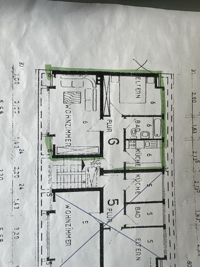 Die ganze Wohnung bis auf Bad und Küche ist mit Laminat ausgelegt. Die beiden sonstigen Räume sind gefliest.