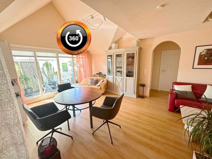 Toll ist der offene Wohn-/Essbereich, mit umfangreichen Möblierungsmöglichkeiten. Dank der angenehmen Fußbodenheizung bieten sich viele Stellflächen an. Große Fenster lassen viel Licht herein.