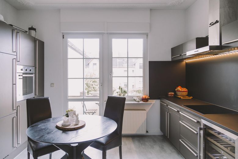 Das Herzstück bildet die hochwertige und gemütliche Wohnküche mit direktem Zugang zu einem der Balkone. Sie bietet ausreichend Raum für gemeinsames Kochen, Essen und Zusammensein und verbindet stilvolles Ambiente mit Alltagstauglichkeit.