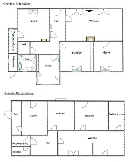 Im Erdgeschoss erwarten Sie vier helle Zimmer, eine Küche mit Hofzugang sowie ein modernes Badezimmer. In Wohnzimmer und Kinderzimmer sorgt eine angenehme Fußbodenheizung für wohlige Wärme. Für gemütliche Abende stehen Ihnen zwei Kamine zur Verfügung – einer im Wohnzimmer, ein weiterer im heutigen Schlafzimmer, der auch als Gästezimmer genutzt werden kann. Diese Kombination verleiht dem Haus eine besondere Wohnatmosphäre mit rustikalem Charme und moderner Technik.