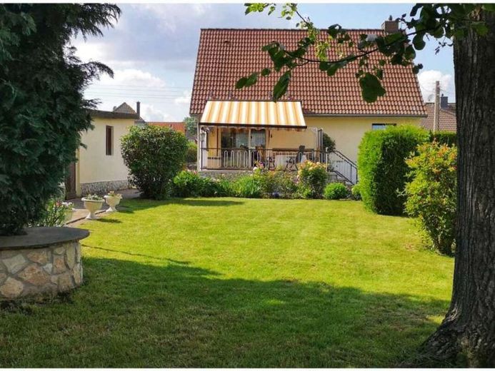 Der Garten ist ein wahres Highlight dieses Hauses. Neben der großzügigen Rasenfläche und den bunten Blumenbeeten gibt es eine zweite, von Nußbaum und Koniferen beschattete, kühle Sommersitzecke, die zum Verweilen einlädt. Ein Brunnen sorgt für eine entspannte Beregnung des Gartens.