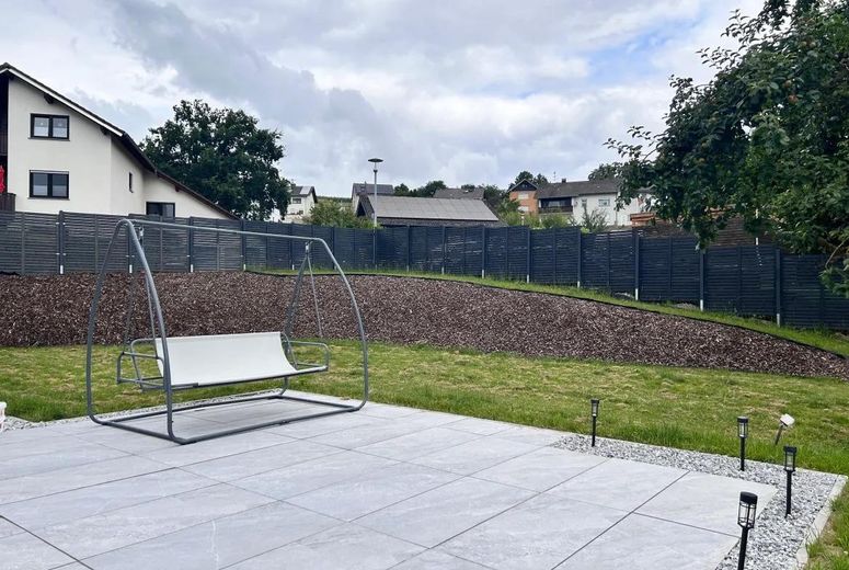Das Grundstück bietet viel Platz für Familie, Kinder und Freizeit. Eine ca. 90 m² große Terrasse sowie der pflegeleichte, komplett eingezäunte Garten laden zum Verweilen ein.