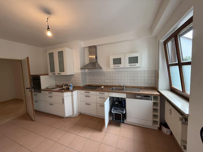 Freundliche, helle, ruhige und gut ausgestattete 2- Zimmer Wohnung im erhöhten Erdgeschoss - Ausrichtung der Fenster nach Westen und Norden zum Weiherbach im Ortsteil Furth mit Wohnküche, großes Bad mit Dusche und Badewanne sowie Anschlussmöglichkeit für Waschmaschine /Trockner, geräumige, quadratische Diele, helle Einbauküche von Alno mit Ceranfeld Backofen Spülmaschine ggf zur Ablöse, trockenes Kellerabteil,