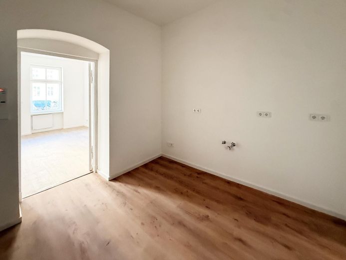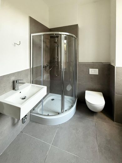 This modern one-room apartment is located in a fully energy-efficient renovated historic building and offers new-build standards within a classic architectural structure. The entire building has recently undergone extensive modernization, including thermal insulation and the installation of new energy-efficient windows.