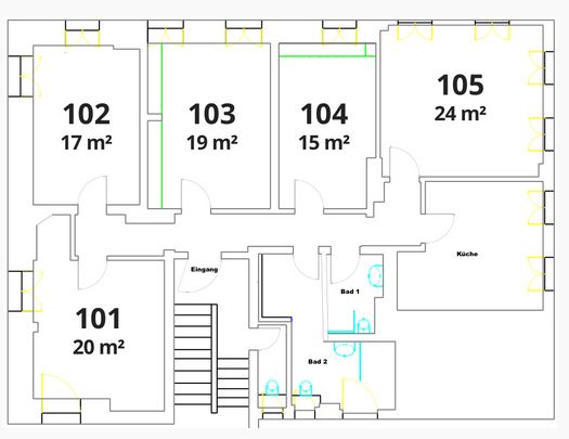 Die Studenten WGs verteilen sich über 4 Etagen. Es handelt sich hierbei um ein vollständig kernsaniertes Haus.