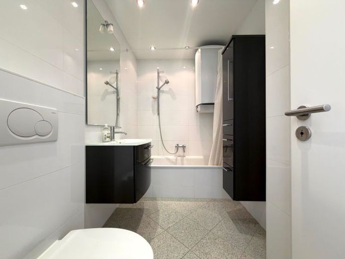 Die kompakte Einbauküche mit angrenzender Speisekammer nutzt den Platz optimal – funktional und charmant zugleich. Das Badezimmer wurde stilvoll saniert und ist mit einer Fußbodenheizung ausgestattet – ein echtes Highlight an kalten Tagen.