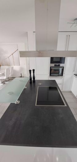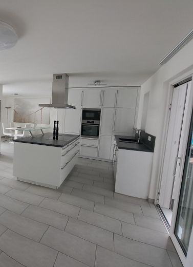 Hochwertige, voll ausgestattete Einbauküche mit Kochinsel