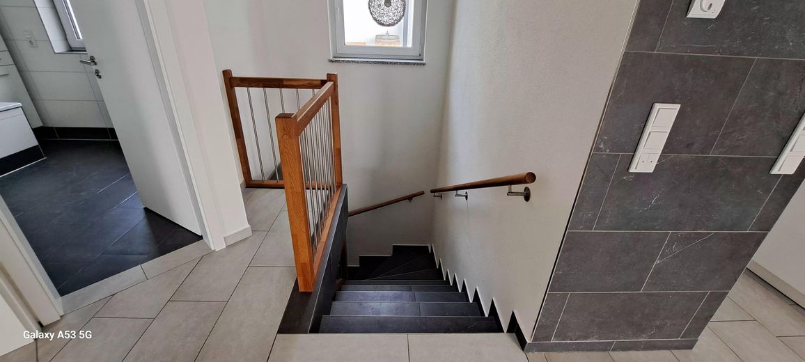 Geflieste Geschosstreppe vom Erdgeschoss ins Kellergeschoss
