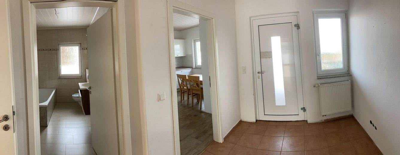 Über den Haupteingang gelangen Sie in den Eingangsbereich. Dort befindet sich die Garderobe und der Anschluss für einen Holzofen, der in kalten Wintermonaten gemütliche Wärme im ganzen Haus spenden kann. Der Außenbereich wartet auf Fertigstellung, was den Wohnkomfort in keiner Weise einschränkt. Der große Garten wurde die letzten Jahre gepflegt und bietet eine schöne Rasenfläche zum Entspannen, Toben und Spielen. Ein Kirschbaum, ein Pflaumenbaum, Himbeeren und Erdbeeren lassen Kinderaugen strahlen und laden zum Naschen ein. Es ist genug Platz vorhanden, um eine Garage, einen Anbau, oder eine Sauna zu realisieren - Machen Sie es sich gemütlich.