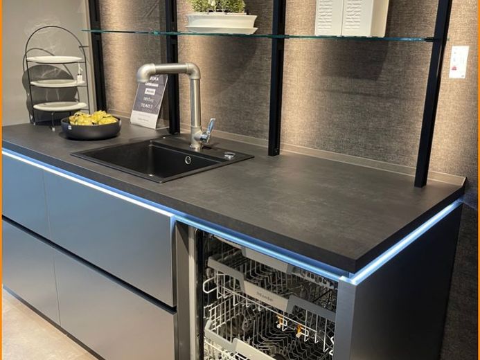 Eine hochwertige Einbauküche mit Kochinsel brauchen Sie sich nicht mehr zu sorgen - diese ist inklusive ausreichend Stauraum bereits vorhanden und erstrahlt in Metall-Optik. Drei nebeneinander liegende Fenster sowie die bodentiefe Fenstertür zum Balkon versorgen das Zimmer mit viel Licht.