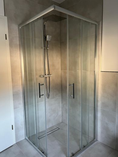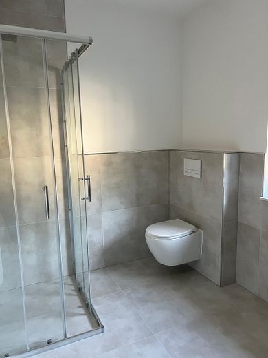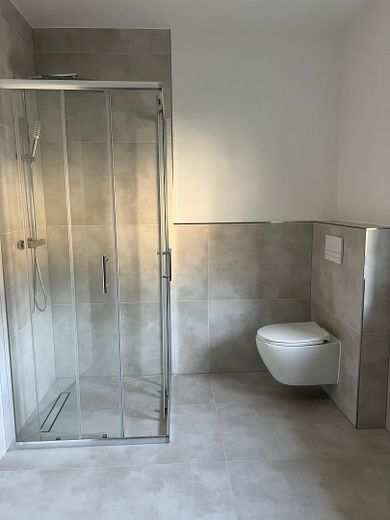 Für zusätzlichen Komfort sorgen ein separates Gäste-WC im Erdgeschoss sowie ein stilvolles Badezimmer mit bodentiefer Walk-In-Dusche und moderner Ausstattung im Obergeschoss.