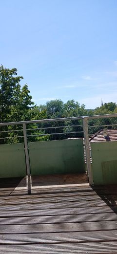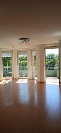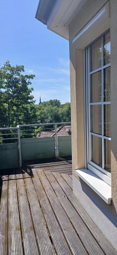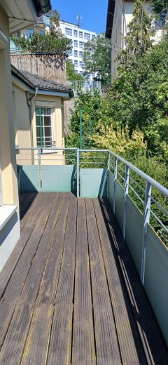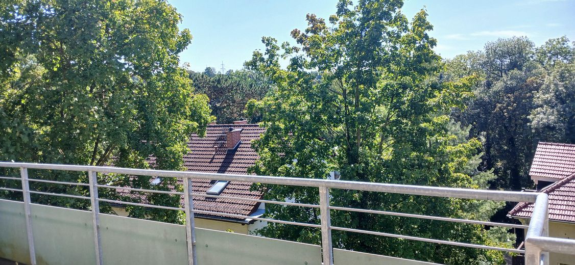 Zur Wohnung gehört auch ein sonniger großer Balkon mit Fernblick.
