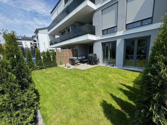 Die barrierefreie Wohnung ist bequem über einen Aufzug erreichbar und verfügt über einen eigenen Garten sowie einer sonnigen Terrasse – ideal zum Entspannen und Genießen.