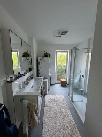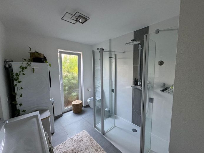 Ein stilvolles Badezimmer mit großzügiger Dusche sowie ein separates Gäste-WC sorgen für zusätzlichen Komfort.