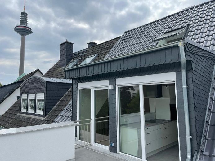 Wir vermieten ab dem 01.03.2026 eine moderne Dachgeschosswohnung im 2. Obergeschoss mit 3 Zimmern, offener Einbauküche und SAT-TV.