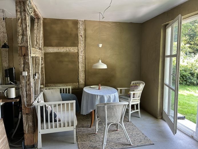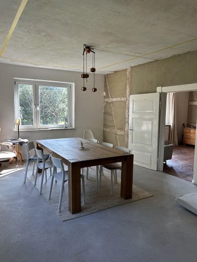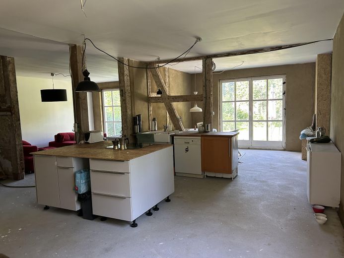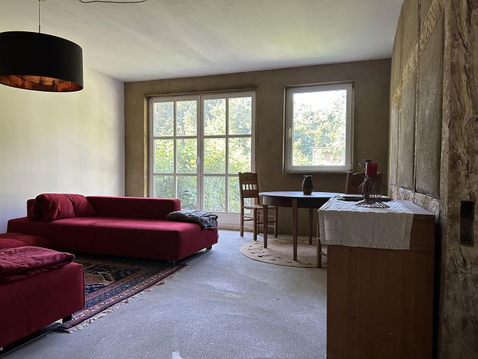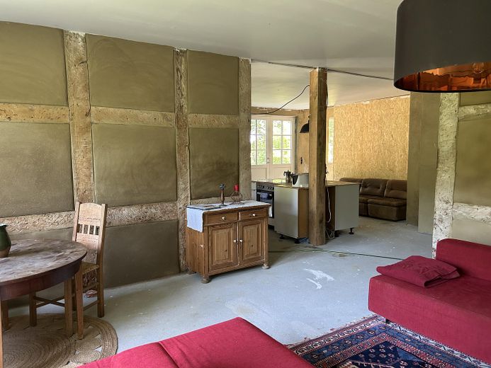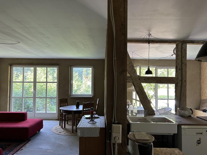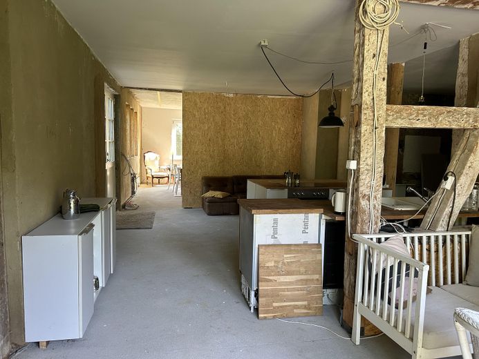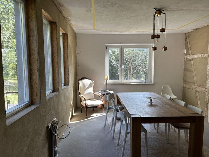 Wir verkaufen unser Herzensprojekt, da unsere Lebensumstände es nicht mehr hergeben. Das Haus wurde entkernt. Die Wände, außer der Trockenbau, wurden mit Lehm verputzt. Der Estrich, mit einer Fußbodenheizung von 120 qm, neu verlegt, Alle weiteren Leitungen sind ebenfalls neu. Der Strom ist neu verlegt. Wie man den Fotos entnehmen kann, ist die Baustelle noch zu Ende zu bringen, aber das Schlimmste haben wir bereits geschafft.