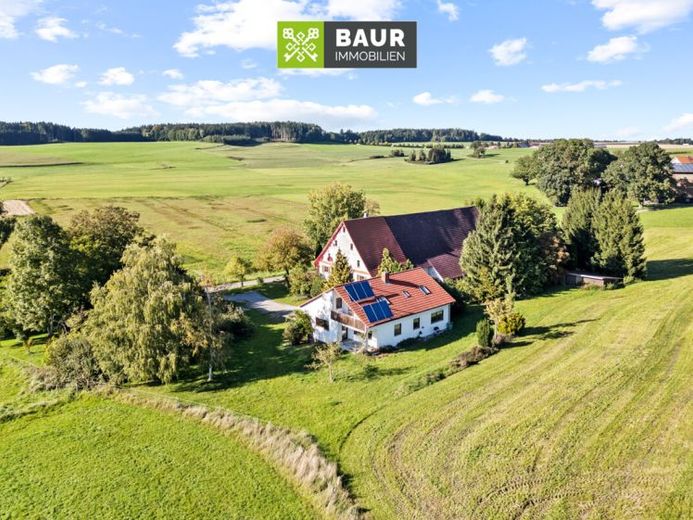 Hier erwartet Sie ein außergewöhnliches Immobilienangebot: Auf einem großzügigen Grundstück von rund 4.200 m² befinden sich ein ehemaliges Bauernhaus mit großer Tenne sowie ein im Jahr 1975 erbautes Einfamilienhaus.