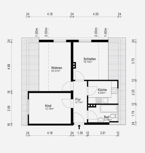 + Nettokaltmiete für die teilmöblierte Wohnung: 699 € pro Monat