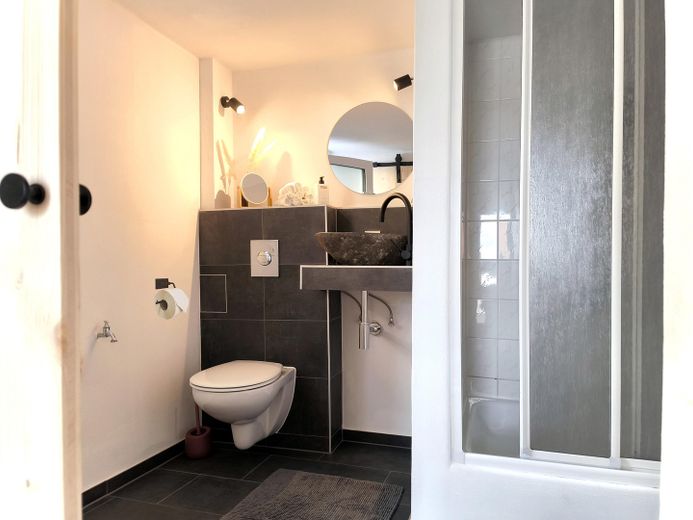 - Bad: Fachgerechte Dämmung mit speziellen Platten für Sanitärbereiche, neue Marken-Armaturen und Toilette (Grohe); vorhandene Duschkabine (ca. aus den 2000er-Jahren) war noch neuwertig und wurde übernommen