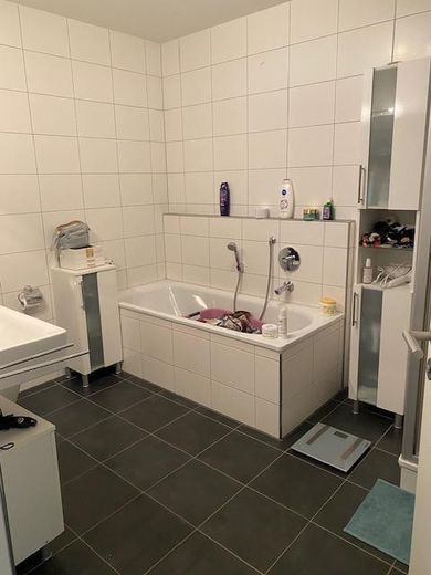 Ein modernes Badezimmer mit Dusche und Badewanne, ein separates Gäste-WC sowie ein praktischer Abstellraum runden das Raumangebot ab. Die vorhandene Einbauküche kann übernommen werden, ebenso auf Wunsch weitere Einrichtungsgegenstände.