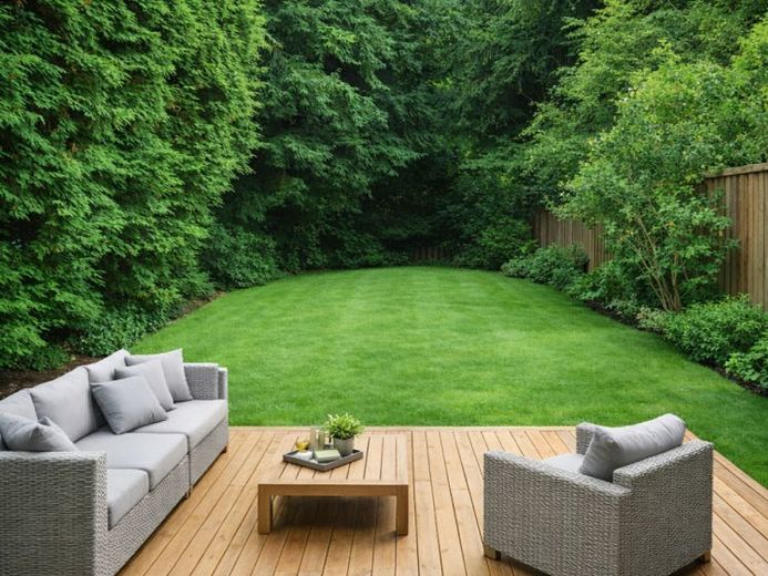 Der pflegeleichte Garten ermöglicht Ihnen erholsame Stunden im Freien zu genießen.