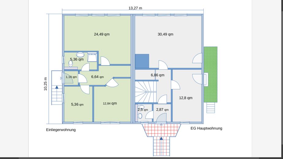 * Hauptwohnung 130 m² ,mit Küche, Gäste-WC, Windfang und großem Wohnzimmer im EG ,