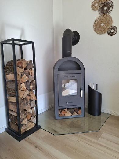 • Wohn- und Esszimmer mit Kaminofen und Schornstein (Dezember 2022)