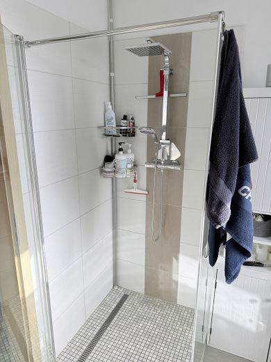 • 4 Zimmer, modernes Badezimmer mit Dusche, Eckbadewanne; Fußbodenheizung (Heizkörperanschluss vorhanden), Gäste-WC (2022 modernisiert)