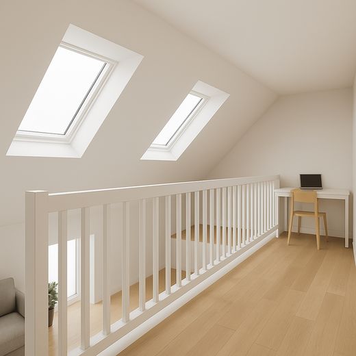 In einem gepflegten Mehrfamilienhaus mit insgesamt 10 Einheiten entstehen durch den hochwertigen Dachgeschossausbau zwei neue 2,5-Zimmer-Wohnungen mit modernem Neubaustandard. Das Dach wird vollständig erneuert und umfassend gedämmt, die Fassade frisch gestrichen – ohne zusätzliche Kosten für den Käufer. Die durchdachte Grundrissgestaltung verbindet einen offenen Wohn-, Ess- und Küchenbereich mit großen Fenstern und beeindruckendem Weitblick über die Skyline Dortmunds. Ein separates Schlafzimmer, ein Tageslichtbad sowie eine flexibel nutzbare Empore – etwa als Arbeitsbereich oder zusätzlicher Wohnraum – runden das Angebot ab.