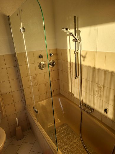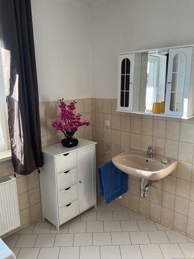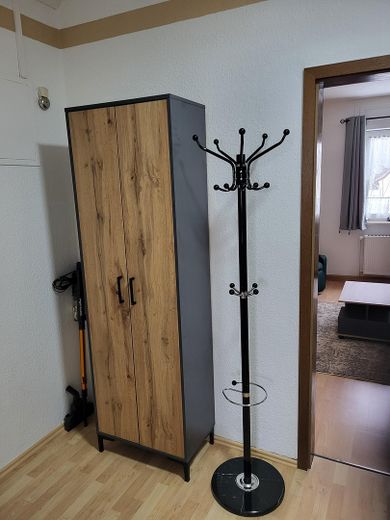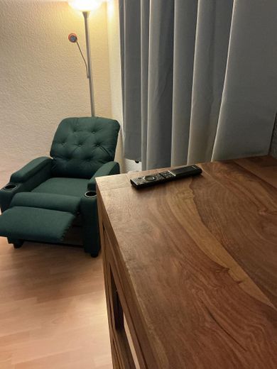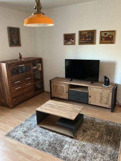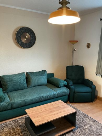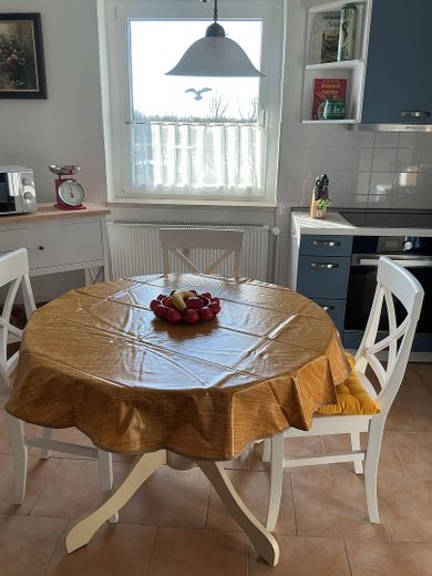Die Ausstattung der Wohnung ist neuwertig. Die Wohn/Schlafstube ist mit einer ausklappbaren Doppelbettcouch mit Schlaffunktion (2,00 × 1,40 m), einem Sideboard, einem Lowboard, einem höhenverstellbaren Schreibtisch nebst Bürostuhl und Bankers Lamp, einem Fernsehsessel mit Massagefunktion und einem Smart-TV mit einer Bilddiagonale von 108 cm ausgestattet. In der Küche befindet sich eine neue Einbauküche, welche einen Geschirrspüler, einen Backofen, einen Induktionsherd und eine Edelstahlspüle beinhaltet. Des Weiteren stehen Ihnen Mikrowelle, Warmwasserbereiter, Kaffeemaschine und Toaster zur Verfügung. In den Schränken finden Sie alles, was Sie brauchen, wie Teller und Tassen, Besteck, Töpfe und Pfannen, diverse Küchenutensilien und Kleinigkeiten wie einen Espressokocher nebst dazugehörigem Geschirr. Auch an diversen Gläsern mangelt es nicht. Das Badezimmer ist mit einer Badewanne mit Duschabtrennung ausgestattet, verfügt über einen Spiegelschrank und eine moderne Waschmaschine. Der Korridor ist zweckmäßig mit Dielenschrank, Spiegel und Garderobe ausgestattet. Darüber hinaus finden Sie hier eine abgetrennte Schlafnische mit einem bequemen Boxspringbett.