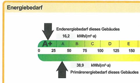 Energieeffizienz A+ (Endenergiebedarf 16,2kWh/(m2*a) und KfW-Effizienzhaus 55.