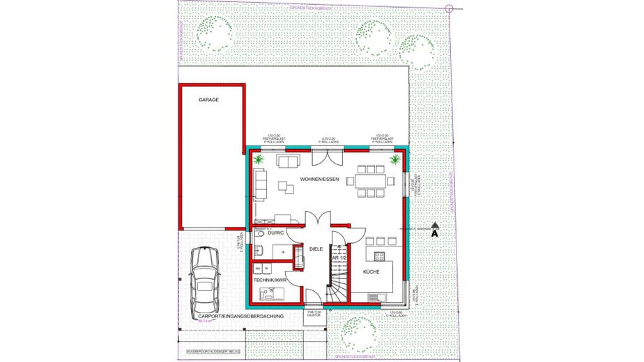 G) großes Carport für einen weiteren PKW und wettergeschützten Zugang ins Haus