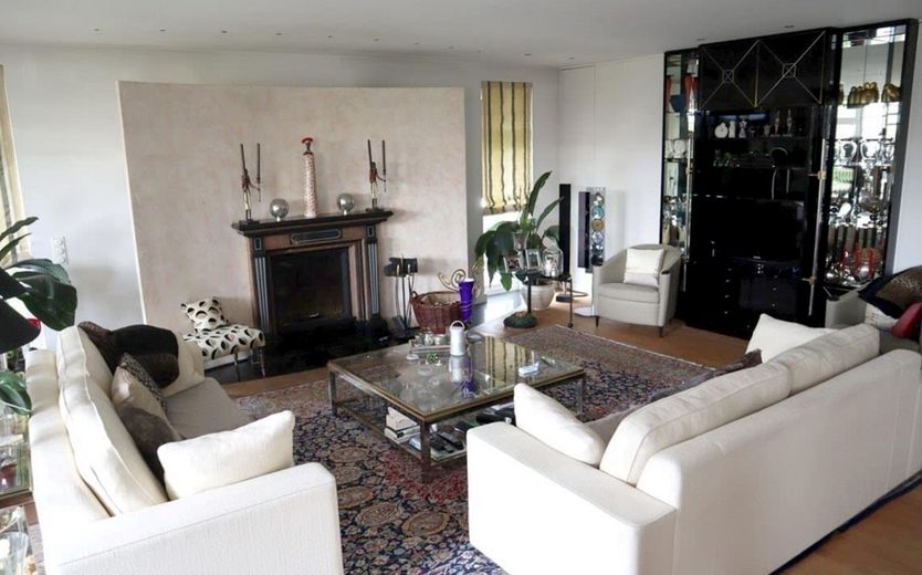Bereits beim Betreten empfängt Sie ein offen gestaltetes Foyer mit einer eleganten Wendeltreppe als architektonischem Blickfang. Von hier aus gelangen Sie in das lichtdurchflutete Esszimmer und weiter in das stilvolle Wohnzimmer, in dem ein offener Kamin für eine besonders behagliche Atmosphäre sorgt.