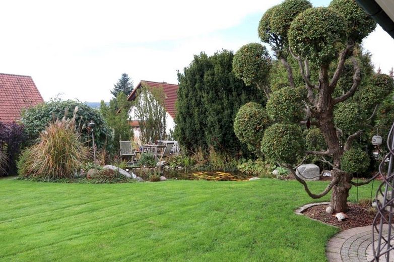 Für Gäste steht eine Anliegerwohnung mit eigenem Duschbad zur Verfügung. Es handelt sich um zusätzliche ca. 60 qm, die nicht in der Wohnfläche ausgewiesen sind. Ergänzt wird diese Ebene durch mehrere Vorrats- und Abstellräume, eine Waschküche, ein separates WC sowie den Technikbereich mit Öl-Heizung und angrenzendem Tanklager.