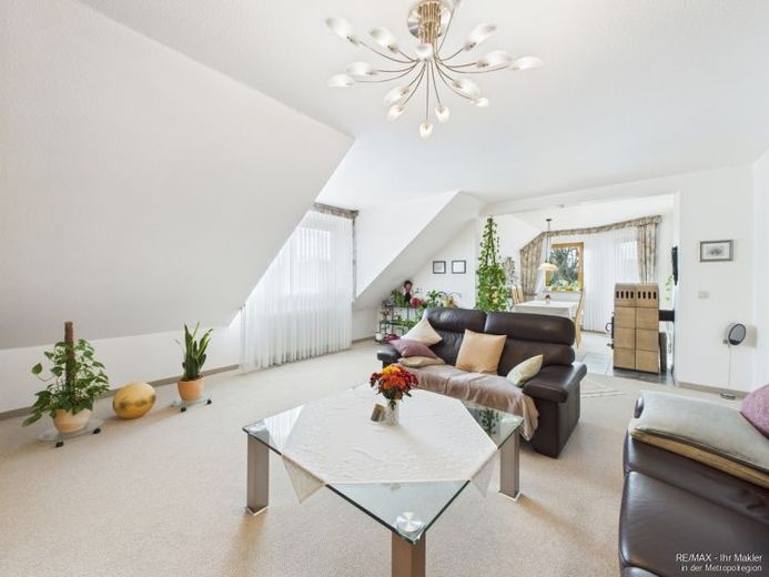 Diese charmante Dachgeschosswohnung in dem 3-Familien-Haus aus dem Jahr 1995 bietet auf ca. 101 m² Wohnfläche ein komfortables Zuhause mit drei gut geschnittenen Zimmern. Der großzügige Wohnbereich ist lichtdurchflutet und lädt zum Entspannen ein. Von hier aus gelangt man direkt in den Essbereich, der durch seine offene Gestaltung besticht und Platz für gesellige Abende bietet.