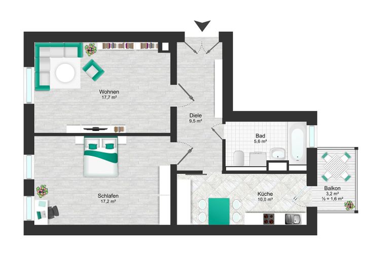 • Wohnfläche ca.: 61 m²