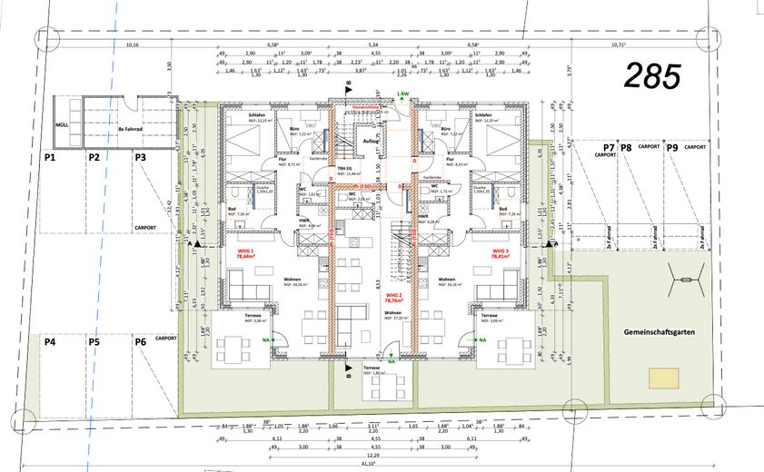 Alle Einheiten sind konsequent auf komfortables, barrierefreies Wohnen ausgelegt: Aufzug, schwellenlose Zugänge sowie bodengleiche/ebenerdige Duschen sorgen für hohe Wohnqualität in jedem Alter. Das Gebäude entsteht als energieeffizienter Neubau nach aktuellem GEG-Standard. Stellplätze sind direkt am Haus vorgesehen; je Stellplatz zzgl. 10.000 € (Carports exklusive). Exklusivere Oberböden sind gegen Aufpreis möglich, eine konkrete Baubeschreibung folgt.