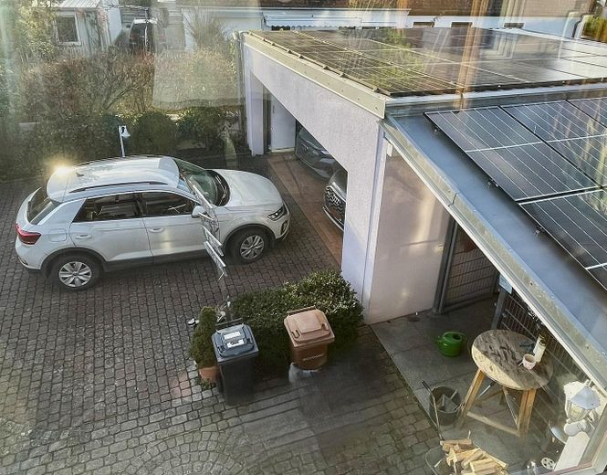 •11 kWp-Anlage auf der Garage zur Eigenstromnutzung inkl. Wallbox