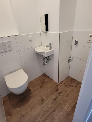 Die Wohnung verfügt über einen hochwertigen Vinyl-Bodenbelag. Badezimmer und Balkon sind gefliest.