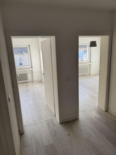 Beim Betreten der Wohnung empfängt Sie ein einladender Flur, der zu den drei Hauptbereichen führt: Zwei geräumige Schlafzimmer, ein lichtdurchflutetes Wohnzimmer sowie eine separate Küche.