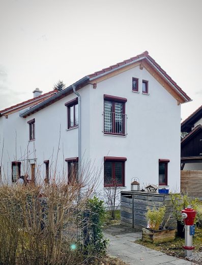 Das Haus liegt am Ende einer ruhigen Sackgasse in ruhiger Nachbarschaft. Hinter dem Garten liegen Felder, an deren Ende, in ca. 150m Entfernung ein Schallschutzzaun die A94 München - Passau verdeckt. Feldkirchen liegt im Münchener Osten und ist gut mit der S2 und der A94 angebunden. Zum Ortskern sind es fußläufig knapp 10 min, zur S-Bahn 15 min. Kindergarten Grundschule, Sportverein und die sehr aktive Volkshochschule sind alle gut zu Fuß oder dem Rad zu erreichen. Weiterführende Schulen sowie mehrere Gymnasien in Riem, Kirchheim, Aschheim und Vaterstetten sind in ca 20 min mit dem ÖPNV erreichbar. Im Sommer lockt der Heimstettener See mit einem gepflegten Naherholungsgebiet. Feldkirchen verfügt über eine gute Infrastruktur sowie ein medizinisches Versorgungszentrum, gemütliche Gasthäuser und ein Bäckerei Café im Dorfzentrum.