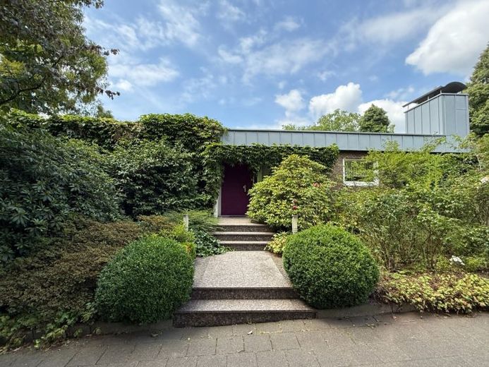 eingefriedeter Gartenbereich, separater Eingangsbereich (seitlich), gepflasterte Terrasse und Wege, Schwimmbad