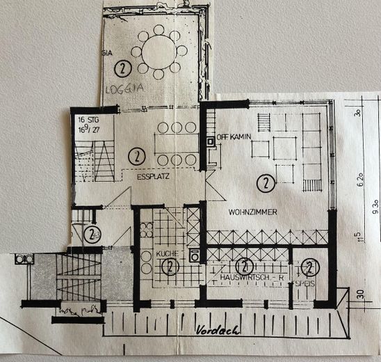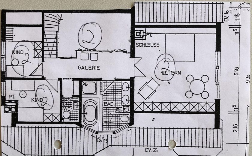Im 1.OG. finden Sie die Küche mit Zugang zum Hauswirtschaftsraum und der anschließenden Speisekammer/Abstellraum mit Fenster. An die Küche grenzt der helle Galerieraum mit dem Essplatz sowie dem Zugang der einladenden wunderschönen überdachten und bepflanzten Terrasse. Nach Öffnung der Doppelflügeltüre befinden Sie sich in einem Lichtdurchfluteten Wohnzimmer mit Heizkamin.Von der Galerie aus kommen Sie in das 2. OG. dort befindet sich das große Schlafzimmer mit begehbarem Schrank, das Tageslichtbadezimmer , Toilette und die beiden Kinderzimmer. Durch die Auszugstreppe wird der Bühnenraum, der sich über die gesamte Hausbreite von ca. 15 Meter erstreckt, erreicht.