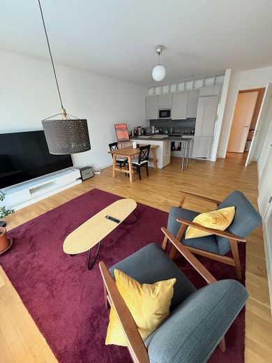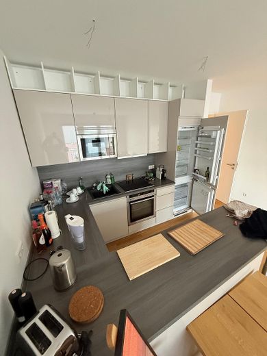 Die Wohnung ist sehr schön in einem Neubau aus dem Jahr 2013 gelegen. Sie verfügt über zwei Zimmer, einen Balkon, einen Keller und eine Einbauküche. Die Küche wird nicht mitvermietet, sondern unentgeltlich zur Nutzung überlassen.