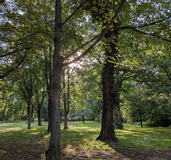 Der Blick über den Park, das warme Nachmittagslicht und die Stimmung bei Sonnenuntergang schaffen eine besonders wohnliche Atmosphäre.