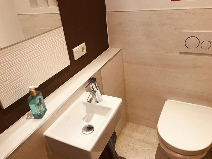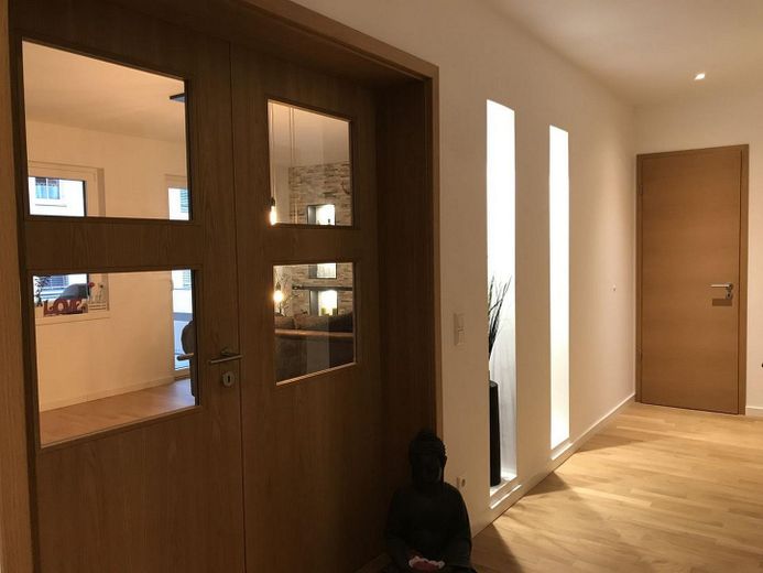 Parkett, hochwertige Steinzeugfliesen, hochwertige Küche mit Markengeräten von Miele und Siemens, Markenarmaturen in Küche und Bad, elektrische Rolläden, Fußbodenheizung, Gegensprechanlage mit Video, jeder Wohnraum ausgestattet mit LAN- und TV-Anschluss, dreifachverglaste Fenster, vierstufige Lüftungsanlage, Designbadewanne, ebenerdige große Dusche, Doppelwaschbecken, Toilette und Bidet